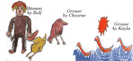 neck. One of the small grouse hens opens her eyes and sees what Iktomni