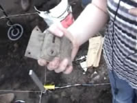 There were 157 pieces of coal and unit 13 had the most coal. We weren't surprised that people used coal back then. For example, the group that was in unit 13 wrote, "In Level 3 we felt that we [found] big parts of a stove as we found bits of metal. It probably was in a kitchen. There was also several pieces of coal and that’s why we think we found parts of a stove. We thought we were in a kitchen because we found part of a tin can that had something in it." Ms. Rosvold, the site supervisor at the Turner Valley Interpretive Centre, told us about people hooking their stoves up to the gas lines from the oil wells so that makes us wonder why they had coal around. We do know that there were coal mines all around Millarville (see our website about coal mining ) but we are still puzzled by the coal we found. Units 12 - 16 seemed to have the larger pieces and 14 and 16 were the only units that had whole bottles. Units 9 to 16 had double the count of glass and metal. If we were going to dig again in another year, we would explore further south. "We started digging the first level and found barbed wire, some white glass, probably from a Pond’s cream jar, and a sharp metal object that looked like a rod with a hook in the end."