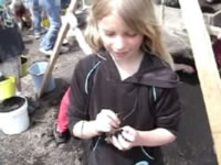 In Level 2 ,we found a piece of blue glass with a goldy color inside it. All the time we were digging, we were hoping that we would find a large post that would be the biggest artifact of the dig. Each little piece of wood was just about 10 cm in length and kept falling apart because it was so rotted. |
