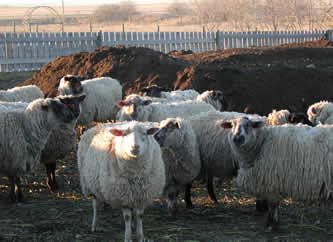 This is a group of all different kinds of sheepthey are all crossbred (at least of six or seven different kinds of sheep all mixed together). When I took this picture, most of the ewes shown here were pregnant. Now we have about 50 or more lambs. |