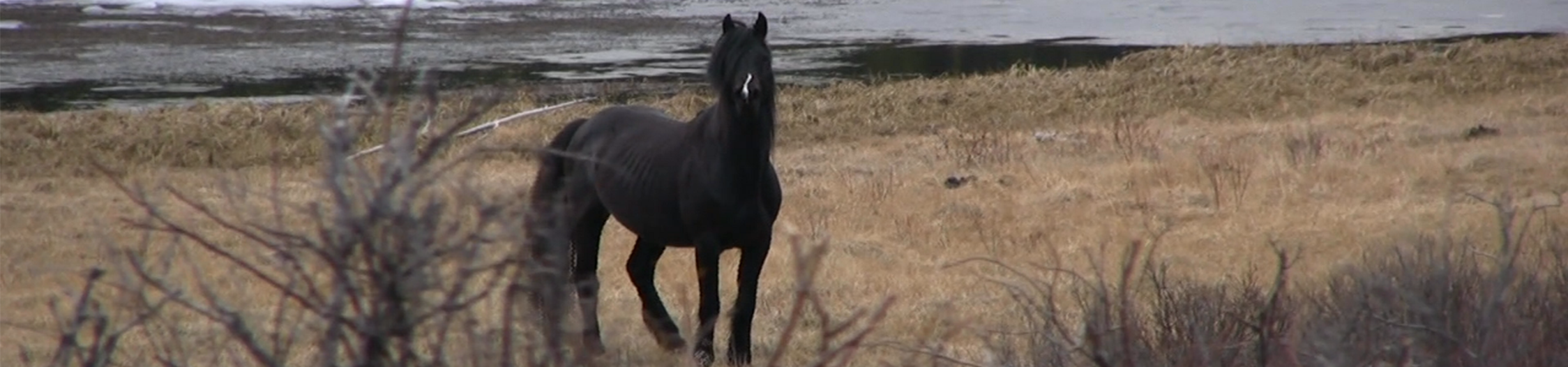 “Pour moi, ces chevaux sont sauvages”, remarque Donna Kendall dont la famille homsteaded dans ce domaine. Ce sont des animaux du troupeau ressemble beaucoup à oreilles dressées cerfs et de recherche toujours en alerte pour protéger le troupeau de danger imminent. Il n’ya pas de propriété de la terre pour ces animaux car ils prennent des décisions comme un troupeau de connaître et de comprendre les risques d’apprendre à faire face au danger. Ils ont besoin d’espace, les arbres et l’eau courante pour la survie. “Au fil des ans Donna mentionné avoir vu des chevaux avec des grands pieds pour naviguer dans le muskeg, non coupées sabots, jambes poilues et de bloquer les têtes de forme.