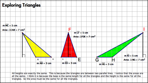 Students then discussed how these two different expressions of the area of triangles were in fact, similar and connected. All students developed sophisticated, multiple ways to express solutions to problems. This principle lies at the heart of UDL in the mathematics classroom.